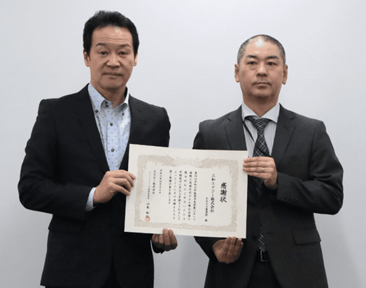 (写真右より) 熊澤グループリーダーと三和エナジー株式会社 高松社長
