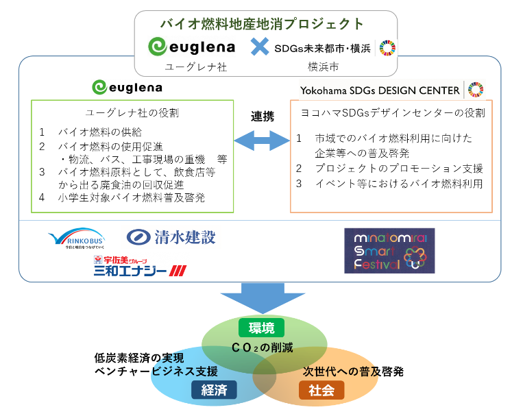 『SDGs未来都市・横浜』を目指す横浜市と協定を締結したユーグレナ社が製造するバイオ燃料を三和エナジーのローリー車両で取り扱いをいたします。今後、バイオ燃料使用を予定する、横浜市内を走る路線バス、建設工事現場の重機などへの提供を行います。