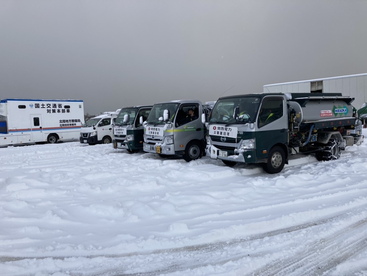 被災地では、積雪によって路面状況が確認出来ず、また凍結の影響もあり、危険な箇所が増えております。