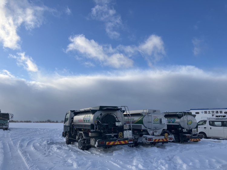 しかし厳しい環境下においても、普段の配送業務と同じく安全第一で緊急給油作業を実施しています。